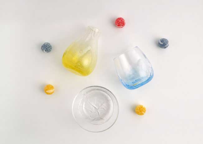 この他にも、色と形の組み合わせで多数のパターンが選べます。世界で一つだけのオリジナルガラスウェアを作りましょう!